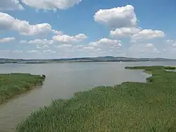 The lake has an area of 26 km2, one third of which is covered by the common reed. Because of the sunny climate of the area and the shallowness of the lake, it is one of the warmest lakes in Europe: its temperature in the summer may reach 26 to 28 °C.[1][2]
