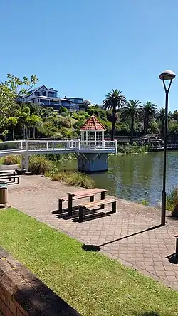 There are a number of attractions at the lake and surrounding reserve: the Higginbottom Fountain, winter garden in an Art Deco conservatory and a statue of Tainui.[3] Tainui was the daughter of a local chief, and the statue was sculpted by local sculptor Joan Morrell. In 2022 it was moved within the reserve to a site closer to the lake.[4][5]