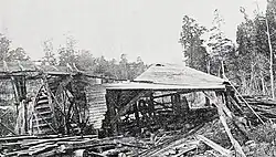 From the 1890s, native forests on the West Coast were exploited for their timber, with kahikatea and rimu being particularly sought after in South Westland.[14] Timber mills operated in the Lake Wahapo area, with one shipment of about 76 cubic metres (2,700 cu ft) of mataī being sent from the Lake Wahapo Mill to Wellington in 1939 for the New Zealand Centennial Exhibition buildings.[15]