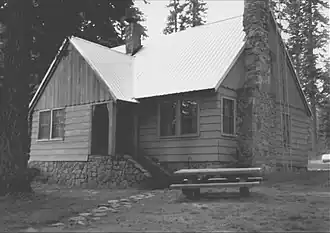 In 1932, the Lake of the Woods Ranger Station was transferred to the Rogue River National Forest along with the lake side campgrounds and the surrounding forest. In the mid-1930s, the Civilian Conservation Corps built a number of new buildings at the ranger station. All of the structures but one were built in the Cascadian rustic style.[4][6]