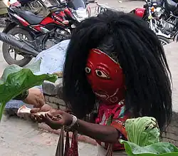 Lakhes figure prominently in the traditional Newar culture of Nepal Mandala. The Lakhe tradition is found in the Kathmandu Valley and other Newar settlements throughout Nepal.[1] Lakhes are said to be demons who used to live in the forests and later became protectors to the townspeople.[2] A female Lakhe is known as Lasin (𑐮𑐳𑐶𑑄).