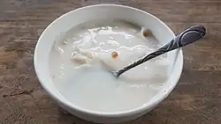 Lamaw, also known as buko lamaw, is a Filipino dessert or beverage made from scraped young coconut meat (buko) in coconut water with milk and sugar (or condensed milk), and saltines or biscuits. Variations may add ingredients like peanuts, graham crackers, or orange-flavored softdrinks. Ice cubes are commonly added to chill the dessert. It is usually made from freshly gathered coconuts and is commonly served within the coconut shell itself. It originates from the Visayas and Visayan areas of Mindanao and is a traditional merienda for farmers working in the fields in rural areas.[1][2][3]