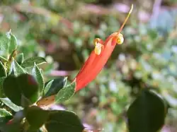 Lambertia uniflora is a shrub in the family Proteaceae. Endemic to the moist south-west corner of Western Australia, it grows to about 3 metres in height.[1] The shrub’s single axillary or terminal flowers appear between October and January in the species' native range. These flowers are orange or red in color with a yellow or yellow-green limb.[2] This species first appeared in the scientific literature in 1810, authored by the prolific Scottish botanist, Robert Brown.