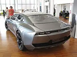The Estoque was introduced at the 2008 Paris Motor Show.[4][5][6] The Estoque is the first front-engine vehicle to be introduced by Lamborghini since the LM002 utility vehicle. It was described as a "concept for a $230,000 four-door sedan".[7] It had a 5.2 litre V10 engine shared with the Gallardo, although there had been speculation that this would be replaced by a V12, V8, or possibly even a hybrid or a turbo-diesel engine, as suggested by the then Lamborghini Brand Director, Manfred Fitzgerald.[5]