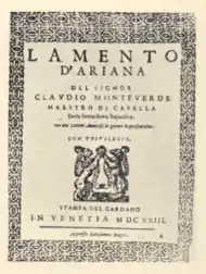 - Monteverdi, Claudio (1623). Lamento di Arian[n]a ... et con due lettere amorose in genere rappresentativo. Venice: Bartolomeo Magni. OCLC 34895164.