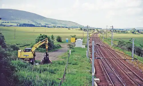 ![]() The site of the station, looking north towards Carstairs, in 2000 | |||||