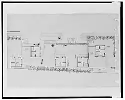 Simultaneously, Rudolph, Twitchell, and Lambie were already underway with the construction of a complex consisting of several lamolithic houses on the other side of Siesta Key, across the street from the famed Siesta Beach. This was Rudolph's first opportunity to experiment with a more urban design approach. The compact site encompassed four housing units with shared lamolithic privacy walls, defining inner and outer space, as well as private and public space. Despite its small footprint, Rudolph was able to create the illusion of expanded volume by staggering the open-plan structures on the site.[19][20]
