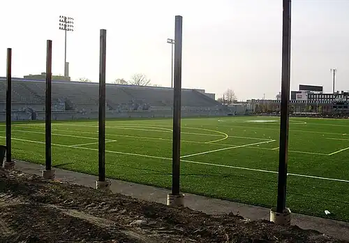 The home games of the semi-professional American football team Toronto Athletics Football Team were played at the stadium from 1993 to 1996. The team provided players looking to keep playing sought to be scouted by professional gridiron football teams. The Athletics won the Mid-Continental League Championship in 1993, and was ranked as high as 9th overall in the American Semi Professional Football Rankings in 1995.