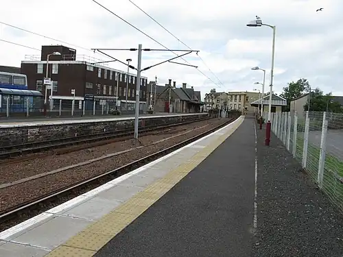 Lanark railway station, managed by ScotRail, is the southern terminus of the Argyle Line on Bannatyne Street, Lanark, South Lanarkshire, Scotland. The station is staffed part-time.[2]