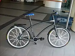 The Lancia Urban Bike is a concept bicycle created by Italian automaker Lancia in collaboration with MomoDesign.[1] Its manufacturers claim that the bicycle has been designed to account for riding performance and comfort while being minimal in weight.[1] The bike has been described as rustproof, due to its parts being made from carbon fiber, aluminum and magnesium.[1] Its frame is designed to absorb bumps, which abates the need for a suspension system.[1]