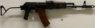 | AKM | Assault rifle | Manufactured by the state arsenal as the MPi-KM (fixed stock, later variants were distinctive stippled plastic) and MPi-KMS-72 (AKMS) with a single strut "coathanger" side-folding stock | ![]()