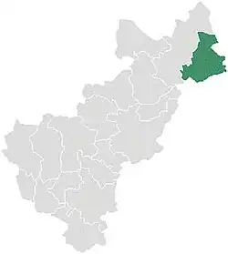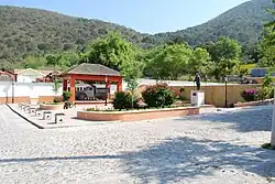 The town of Landa de Matamoros is the local governing authority for 130 communities, even though only 1,418 of a total municipal population of 18,905 live in the town proper.[2] These combined communities cover a territory of 840.2 km2, the third largest in Querétaro.[3] The municipality is divided into six "micro-regions": Landa, La Lagunita, Agua Zarca, El Lobo, Valle de Guadalupe and Tilaco.[4] The municipality is located in the far northeast of the state, with altitudes that vary from 350 to 2100 masl. It borders only one other municipality in Querétaro, Jalpan de Serra. It borders the state of San Luis Potosí to the north and east, and with the state of Hidalgo to the east and south. The municipality is headed by a municipal president and the government has nine officials called "regidors".[3]