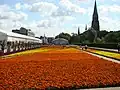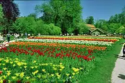 From 1980 to 2000, the "large horticultural shows" were held annually in Baden-Württemberg. Since 2001, they have been held annually, alternating with the "small state garden shows", the so-called green projects.[2] For green projects, the state provides a subsidy of a maximum of two million euros for green projects and a maximum of five million euros for state horticultural shows, whereby the municipalities also have to make corresponding contributions of their own.[3] By 2010, the state has granted almost 80 million euros in state subsidies. This has resulted in at least three times and in some cases even seven times the amount of investment on the part of the municipalities; they invested around 153 million euros: In the process, around 625 hectares of green spaces were created, redesigned and permanently secured. The State Horticultural Shows and green projects provide the impetus for comprehensive structural developments that create a spirit of optimism in the municipalities and strengthen their economic development. An expert commission will evaluate the applications and assess the submitted concepts on site. The Council of Ministers then awards the state garden shows and green projects in a cabinet meeting.