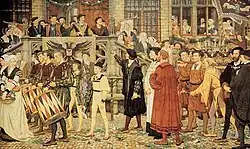 The Landjuweel started out as a cycle of seven shooting matches between the Schutterij guilds in Brabant, who used the opportunity to practice the handling of arms.[2] The upper classes of the country would witness the shootings. Occasionally sovereigns like William the Silent and Charles V also took part in the matches.[1]