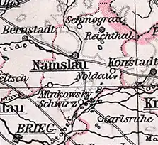 The district became part of the Province of Silesia in 1815, as part of Regierungsbezirk Breslau.[3] The indigenous Polish population was subjected to Germanisation policies. On 8 November 1919 the Free State of Prussia dissolved the Province of Silesia and the Namslau district became part of the new Province of Lower Silesia, which was formed from Regierungsbezirk Breslau and Regierungsbezirk Liegnitz. With the entry into force of the Treaty of Versailles on 10 January 1920, parts of the district including the town of Reichthal (Rychtal) and the surrounding rural communities became again part of Poland. The persecution of Poles intensified in 1939.[4] In January 1945, the Red Army captured the area of the Namslau district and in April, it became again part of Poland.