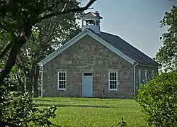 The Lanesfield School is a historic limestone one-room school in Edgerton, Kansas that operated as a school from 1869 to 1963. The school is an example of the one-room schoolhouses that served much of rural America during the nineteenth century, and it is the only remaining structure from the former town of Lanesfield, which served as a mail stop along the Pony Express and Santa Fe Trail. The school reopened as a museum in 1967.[1][2][3][4] The school is located on the Lanesfield Historic Site which includes the schoolhouse, four outbuildings, and a modern visitors center.[3]