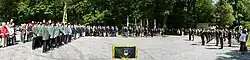 On 13 June 2009 Members of the Langeleben Reunion, an association of former Royal Signals and Intelligence Corps soldiers who had been posted to Langeleben, were back on parade and after marching down from the demolished camp to a nearby clearing they paraded close to a memorial stone that has been erected to commemorate their service there between 1951 and 1992. The stone was carved by Paul Ellis,[3] son of a former Langeleben Serviceman and a UK stonemason of some repute[4] who is Stonemason in Lincoln Cathedral. He offered his services at cost and these were paid for by the members was officially blessed and unveiled.[5]