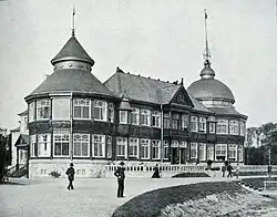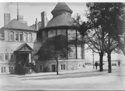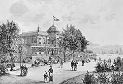 The first Langelinie Pavilion was built at Pinnebergs Reduit in 1884.[1] It was owned by De Forenede Bryggerrier but contained facilities for the Royal Danish Yacht Club. The building was designed by Vilhelm Dahlerup. Dahlerup was also the designer of a new footbridge, Gefion Bridge, which provided a link between the Gefion Fountain and the Langelinie Park across the access road from the south (now Ved Kongeporten). Later he also served as architect for the adjacent Free Port.