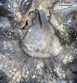 First named by Kidston and Lang in 1920 from Early Devonian fossils in the Rhynie chert,[10] the original generic name Hornea was later found to already refer to a flowering plant in the family Sapindaceae, Hornea mauritiana, leading Barghoorn and Darrah to propose renaming the genus Horneophyton in 1938.[1] It was classified as a rhyniophyte (subdivision Rhyniophytina) by Banks, but the absence of true vascular tissue led Kenrick and Crane in 1997 to create a new class, Horneophytopsida, for this and similar genera.[11] A single species, Horneophyton lignieri, has been described.[2]