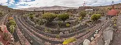 The Jardín de Cactus is a cactus garden on the island of Lanzarote in the Canary Islands. It is situated in the village of Guatiza, in a former quarry where volcanic sand lapilli (volcanic pyroclast, locally called "picón" or "rofe") was extracted to spread on cultivated areas to retain moisture. Prickly pears are grown in the area for the production of cochineal, an insect from which the natural dye carmine is derived.[1]