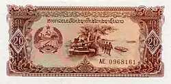 Banknotes issued in 1975 or before in Pathet Lao controlled areas, and were in denominations of 1, 10, 20, 50, 100, 200 and 500 kip.[9]