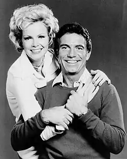 ![]() Stephens and Tony Franciosa in a publicity photo for the Matt Helm TV series | |