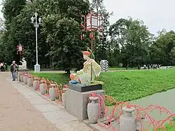 The Large Chinese Bridge is one of three bridges that lead to the village. The Dragon Bridge, and the Large Chinese Bridge were completed in 1785 and the Cross-Shaped Bridge (Krestovoy Most) had been erected six years earlier.[1]