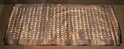 The Aṣṭadaśasāhasrikā Prajñāpāramitā Sūtra (18,000 line Perfection of Wisdom Sutra, Tibetan: ’phags pa shes rab kyi pha rol tu phyin pa khri brgyad stong pa zhes bya ba theg pa chen po’i mdo, Chinese: 會第, pinyin: Sānhuì dì sānhuì xù) is preserved in Sanskrit, and Tibetan, Chinese and Mongolian translations. The earliest Sanskrit manuscript of any the Larger Sutra texts is the Gilgit Manuscript of the Aṣṭadaśasāhasrikā, dating to the 5th or 6th century CE.[5][2] Zacchetti estimates that the Gilgit manuscript contains between 18,000 and 20,000 slokas.[18]