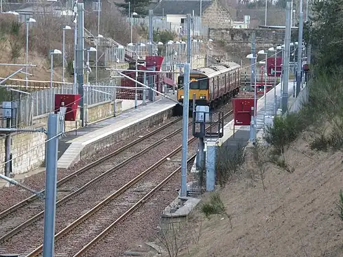 Larkhall railway station serves the town of Larkhall, South Lanarkshire, Scotland. The station is the south-eastern terminus of the Argyle Line, 16+14 miles (26.2 km) south east of Glasgow Central railway station.