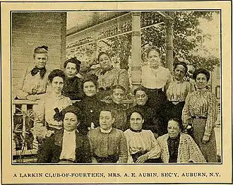 The Larkin company later recruited housewives, called "Larkin Secretaries," and neighborhood children to market their products door-to-door, much like Avon products are now sold. The Larkin Secretaries organized "Larkin Clubs" of ten members that were set up so each month each member of the club would pledge to order $1 worth of Larkin goods. One member was then selected at random to receive the $10 premium and the next month the premium would go to another member.[2]