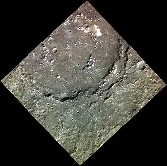 ![]() Oblique view of Larrocha from MESSENGER's second flyby on 6 October 2008 | |
