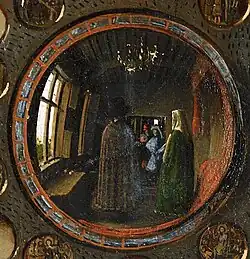 - ^ a b Jonathan Miller, for example, in 1998, continued to regard the inset picture as a reflection in a mirror.[74]