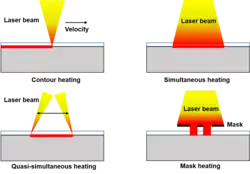 There are four different modes of transmission laser welding: scanning mode, simultaneous, quasi-simultaneous, and mask heating.[8]