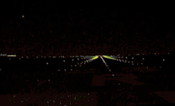 The photos at right flash because most incidents are of flashes and not of steady illumination. In accidental illuminations there may be just one or a few flashes. Even in deliberate illuminations, it is difficult to keep a hand-held laser focused on a moving target, so there will be a series of longer flashes.[6] With helicopters at close range, it is possible to have a more or less continuous light. The flashes shown greatly exaggerate the duration of a laser flash and use green rather than less visible red light. With a plane traveling hundreds of miles per hour and a laser beam size of only a meter or so, flash durations would be measured in thousandths of a second.[6]