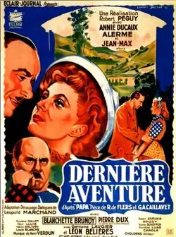 Last Adventure (French: Dernière aventure) is a 1942 French comedy film directed by Robert Péguy and starring Annie Ducaux, Jean-Max and André Alerme.[1] [2] The film's sets were designed by the art director René Renoux.