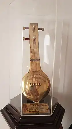 Latif Award (Sindhi: لطيف ايوارڊ) is given by Department of Culture, Tourism and Antiquities, government of Sindh to the best researchers and singers of Shah Abdul Latif Bhittai who made extraordinary work in Arts and Research field related with mystic poetry of Shah Abdul Latif Bhittai, Sindhi language and Sindhi music. This award is a highest cultural decoration given by Government of Sindh.[1] The award is given on Urs of Shah Abdul Latif Bhittai each year.[2][3] Latif Award is a unique golden model of Tamboro, a stringed music instrument, which is said to be invented by Shah Abdul Latif Bhittai himself.[4][5]