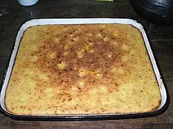 The cuisine of Paraguay includes unique dishes such as sopa paraguaya, kiveve prepared using a pumpkin, also known as "andai", or Chipa Guasú. Chipa Guasú, an original dish to Paraguay, is a cake made with corn grains that is now widely served in Northeastern Argentina as well. The national drink of Paraguay is known as terere, in addition to fruit juices and soft drinks being very common throughout the country. Yucca and corn are two important ingredients in Paraguayan cuisine[5]