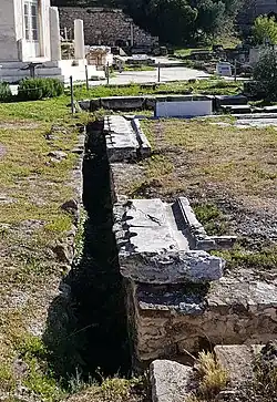 A pit latrine is a simple and inexpensive toilet, minimally defined as a hole (pit) in the ground. More sophisticated pit latrines may include a floor plate, or ventilation to reduce odor and fly and mosquito breeding (called ventilated improved pit latrine or "VIP latrine").[5] Many military units, if intended for extended use, place basic shelters and seating over the pits. A pit is typically sited well away from any water sources to minimize possible contamination. After prolonged use, a pit is typically buried.