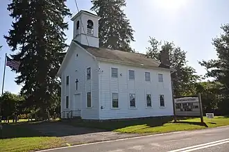 Lattingtown Baptist Church is a historic Baptist church located at Lattintown, Ulster County, New York. The meeting house form building was built about 1810 during the Federal period. It is a two-story, heavy timber-frame structure with queen post and purlin roof framing. It was extensively renovated during the 19th century to add an eclectic blend of Gothic and picturesque-inspired elements. Also on the property is the church cemetery, with burials dating to 1817; privy; and stone walls.[2]
