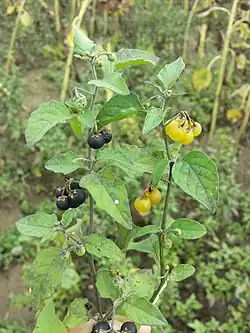 ...los hechiceros [= Machi/sorcerers] could quickly recover [from Latua intoxication] with a drug from a Solanum species of the section Morella (to which Solanum nigrum belongs).[25]