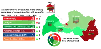 Following the elections, a centre-right coalition government was formed by Unity, the Union of Greens and Farmers and the National Alliance. However, the government resigned on 7 December 2015.