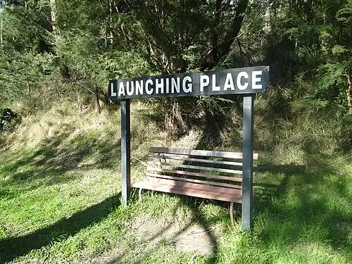 Launching Place was a railway station on the Warburton line in Victoria, Australia, which served the local town of the same name. It opened and closed with the line. All that remains of the station are the concrete posts of the platform wall. There is a station name sign on the Lilydale to Warburton Rail Trail at the station site.