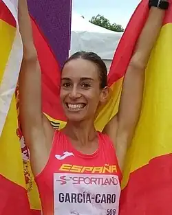 Laura García-Caro Lorenzo (born 16 April 1995) is a female racewalker from Spain. She competed in the Women's 20 kilometres walk event at the 2015 World Championships in Athletics in Beijing, China, finishing the 32nd.[1] She went viral during the 2024 European championship for starting to celebrate a bronze medal that she would lose in the last 5 metres of the race
