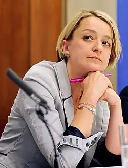 Laura Juliet Kuenssberg (born 8 August 1976) is a British journalist who presents the BBC's Sunday morning politics show. She was succeeded as Political Editor of BBC News by Chris Mason.[1][2]