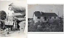 Hislam lived near Stroud, Gloucestershire, where he worked as a clerk and later a postman. Winifred was a trained teacher and became the main breadwinner. During the fifties Laurie was confirmed a Catholic by William E. Orchard, the pacifist parish priest of St Mary of the Angels Church, Brownshill. In 1957 the couple bought a plot of land and Laurie built, single-handedly, a three-bedroomed wooden bungalow for the growing family. He took 'single-handed' to the extreme of making his own concrete blocks for the foundations as well as learning the skills of plumber and electrician. In 1957, while working on the construction, he was visited by Chelo and Chivvi, two of the Basque refugee children he had sponsored in 1938, now married and living in Bilbao.[16]
