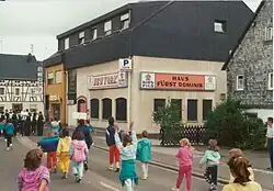 In 1960 and 1961, the film Black Gravel (Schwarzer Kies) directed by Helmut Käutner, was shot in Lautzenhausen. The film tells the story of a man named Robert Neidhardt (Helmut Wildt), a gravel dealer in the fictitious village of "Sohnen", who, on the sly, sells gravel to smaller companies which was meant for building the runway at the nearby air base. He must flee when the police find out about his unlawful deals, and this leads to great misfortune for himself as well as others.