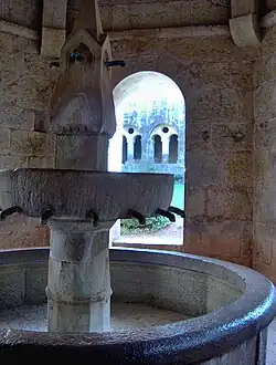 Though ecclesiastical lavabos are ordinarily of metal, a familiar lavabo consists of a terra cotta tank with a faucet attached and a small basin below it. Today it is a common feature in many gardens in Europe and the U.S. as a decoration whose practical use has been long forgotten.