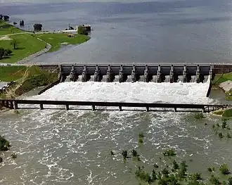 Lavon Dam is located in Collin County, Texas on the East Fork[1] of the Trinity River, about 3 miles east of Wylie and 22 miles northeast of Dallas. It was constructed to create the Lavon Lake and is named after the town of Lavon. Dams are generally named after the closest town near the structure.[2]