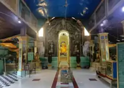 A 20-foot-high portal on the eastern façade leads into the pagoda via a vaulted passage measuring 4 feet 8 inches wide, 16 feet high, and 29 feet long. This corridor opens into a central chamber containing a 12-foot-high seated Buddha image carved from a single stone block, resting on a stone altar beneath a hemispherical dome ceiling.[2][3]