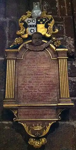 He died on 27 February 1717–18, and was buried in Chester Cathedral, where a monument to his memory was erected by his son Arthur (1668–1738), prebendary of Chester.